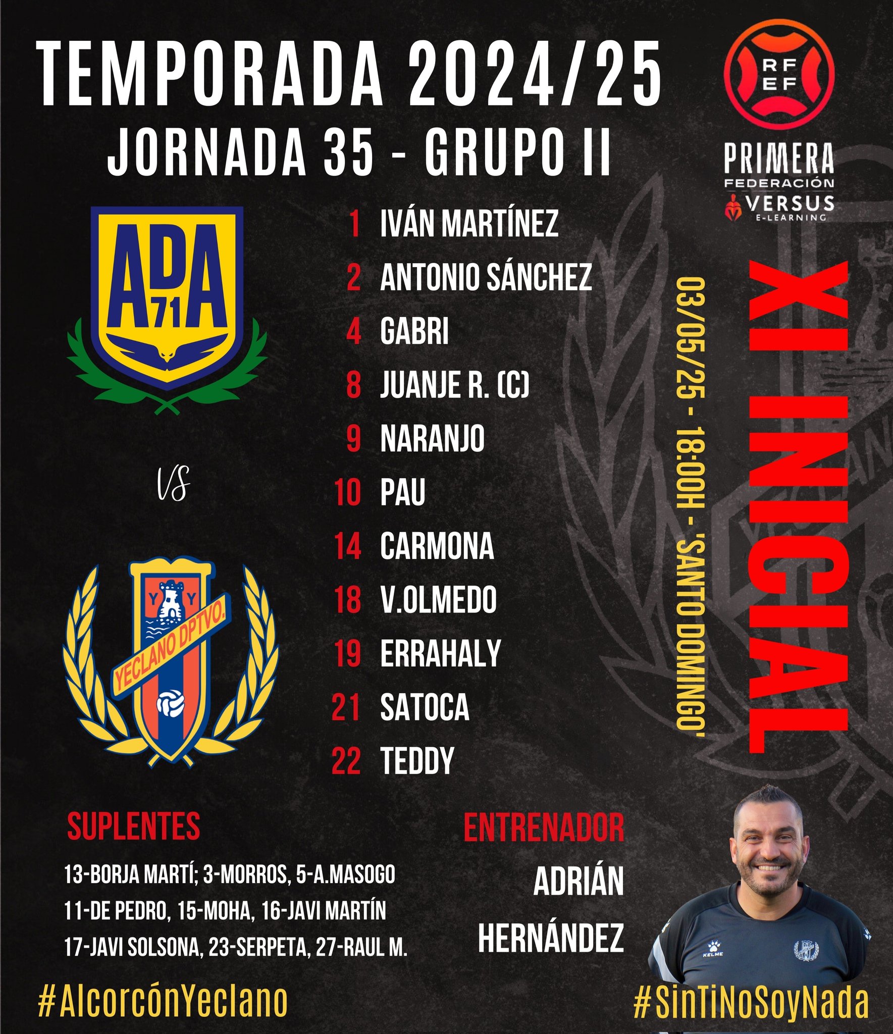 17:45 | También Adrián ya ha elegido a sus once guerreros, con la única baja de Mayorga por acumulación de amarillas: