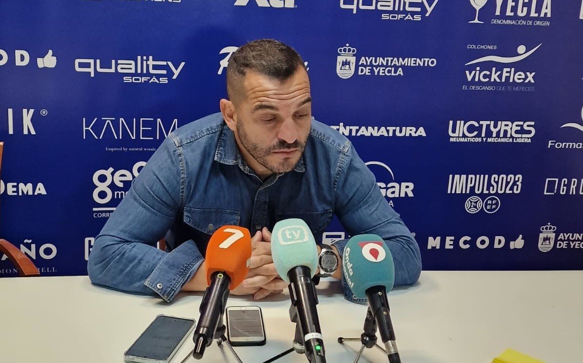 Adrián Hernández, entrenador del Yeclano Deportivo, pasó por rueda de prensa tras el empate sin goles en el partido contra El Palo FC.
