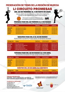 Este circuito está organizado por La Federación de Tenis de la Región de Murcia, el cual constará de tres fases y