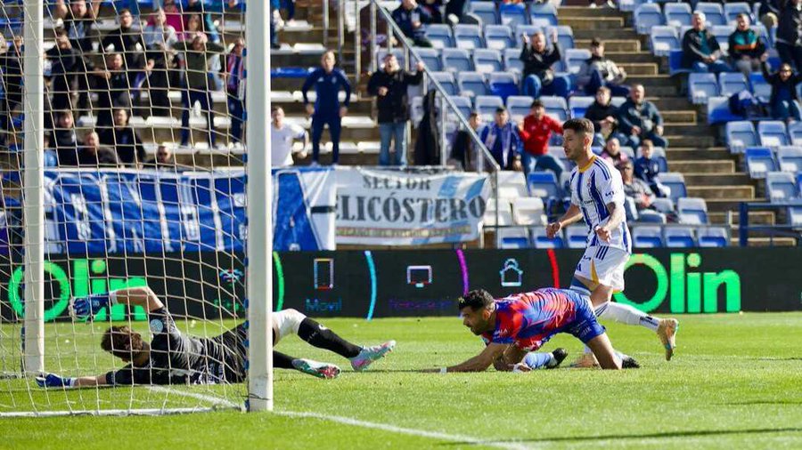 De forma sorprendente, en el 43′ Iván Ruiz dio entrada a Emaná y Rementeria, en lugar de Nani y Borona, cambiando el dibujo. La sensación de que con poco el ‘Decano’ generaba peligro continuó, al borde del descanso, un balón llovido a Caye Quintana, generó dudas en la defensa yeclana que pensó en el fuera de juego, y el veterano delantero probó a Acín con una volea que sacó con el pie el portero maño.