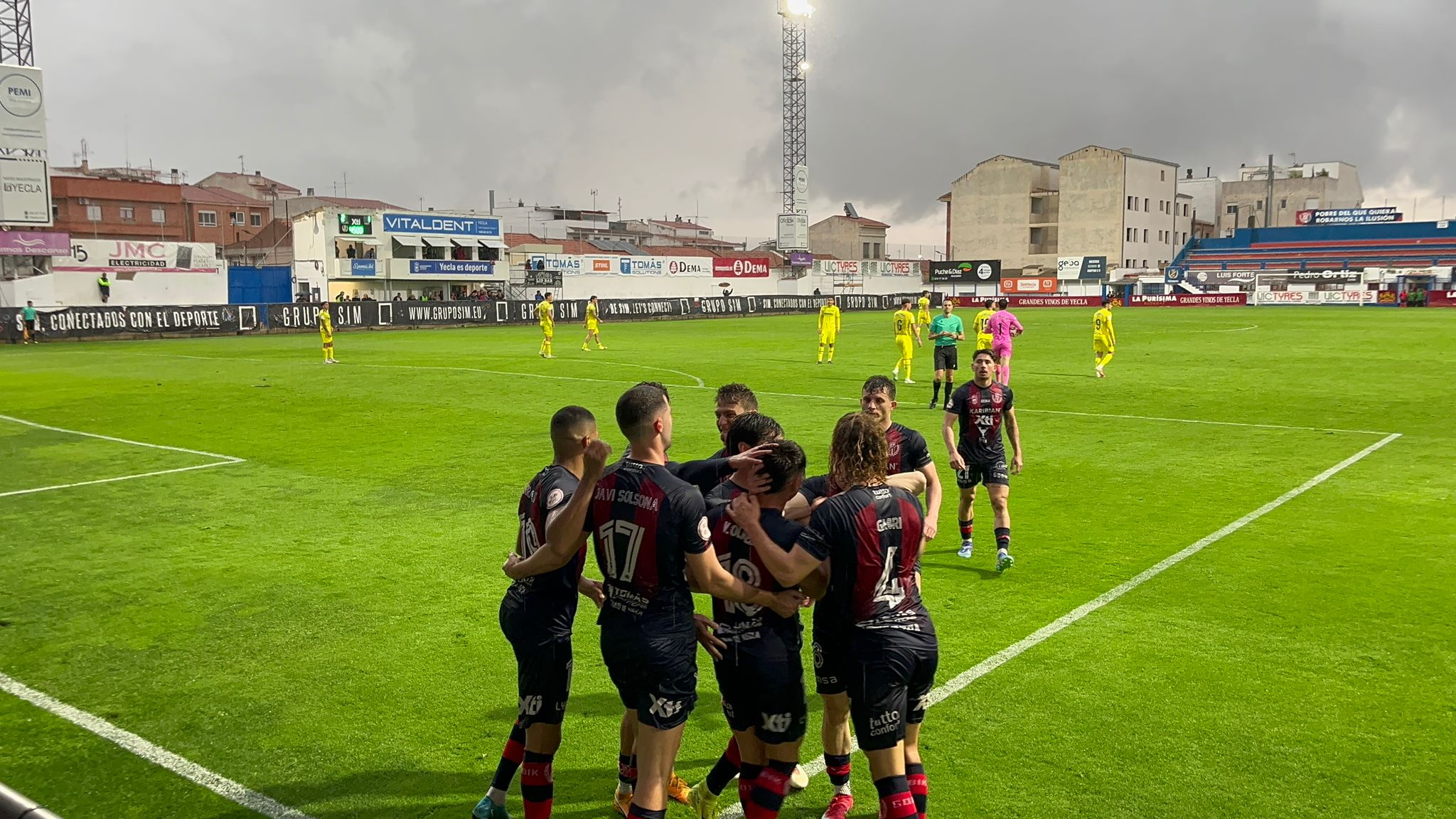 Para la segunda mitad se quedaban en el banquillo los amonestados Mounir y Olmedo por Carmona y Morros. Adrián Hernández no quería sustos. Gestionar la superioridad numérica no estaba resultando sencillo, con el Villarreal aguantando para salir a la contra. Pero paró la lluvia y comenzó el vendaval de ocasiones. Lo intentó Serpeta y después el recién ingresado Javi Martín rozó el tercero con un disparo con demasiada rosca tras una buena jugada combinativa. La defensa visitante despejaba un remate de Pau Pérez en la línea de gol y Joseda metió el susto en el cuerpo de la parroquia yeclana con un gran disparo lejano que obligó a Iván Martínez a intervenir. Los azulgranas consiguieron, esta vez sí, cerrar el partido con un fuerte disparo de Antonio Sánchez en una jugada embarullada. Ya con el 3 a 1 ocurrió bastante poco. Un disparo de Teddy y un remate de Serpeta pudieron suponer el cuarto tanto ante un Villarreal B que se vació a pesar de estar con dos menos.