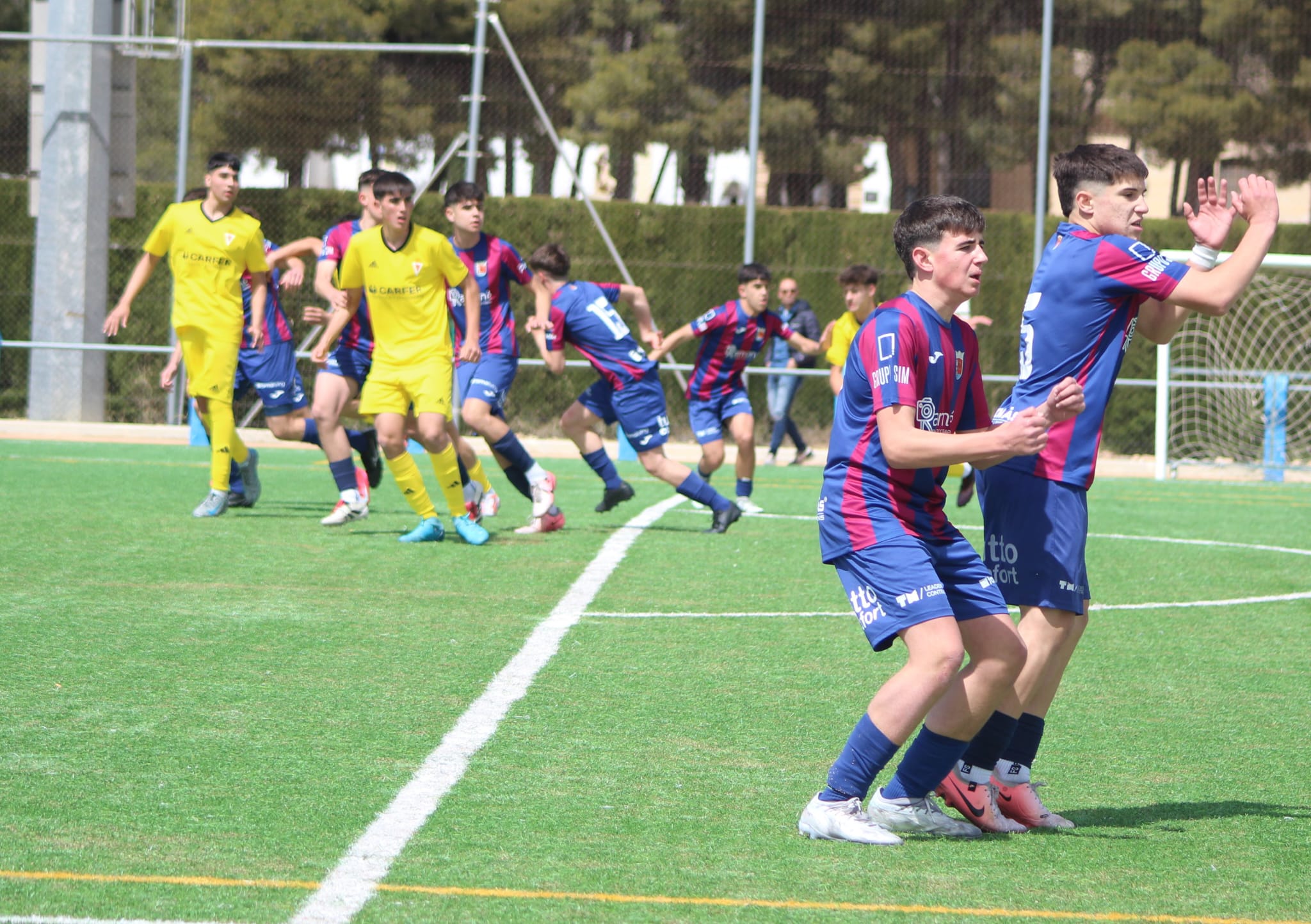 Buen partido de los chicos de Alevín B que estuvieron a cargo de Miguel Ángel. El resultado no muestra la realidad del juego. Los chicos de Yecla le plantaron cara a un equipo que llevaba diez puntos más que ellos y que realmente no chutaron a puerta salvo en prácticamente los dos goles que metieron. El primer gol llegó en el 15, tras un chute a portería de Hugo que tocó el defensa y terminó dentro de la portería. Aunque le duró poco la euforia a los azulgranas, en el 17 lograron el empate tras un córner los de Molina. En la segunda parte lo intentaron los de Yecla pero se encontraron con una férrea defensa, les faltó efectividad de cara a portería a los del Altiplano, pero en el 21 Víctor logró adelantarse para poner el 2-1. No dejaron de intentarlo los locales pero ya con el tiempo cumplido el Molina logró el empate para desesperación de los chicos de la SDFB Yecla.