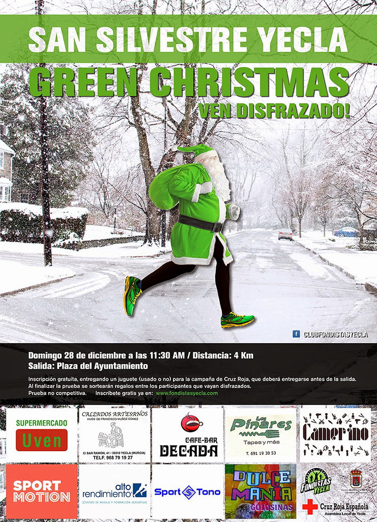 La popular carrera navideña desembarca en Yecla. Lo hace de la mano del Club Fondistas Yecla este domingo en una prueba de cuatro kilómetros por zona urbana que tiene la particularidad especial en que la gracia consiste en hacerlo disfrazado, como se realiza también en otras ciudades, respetando el halo festivo que rodea a esta ya tradicional carrera.