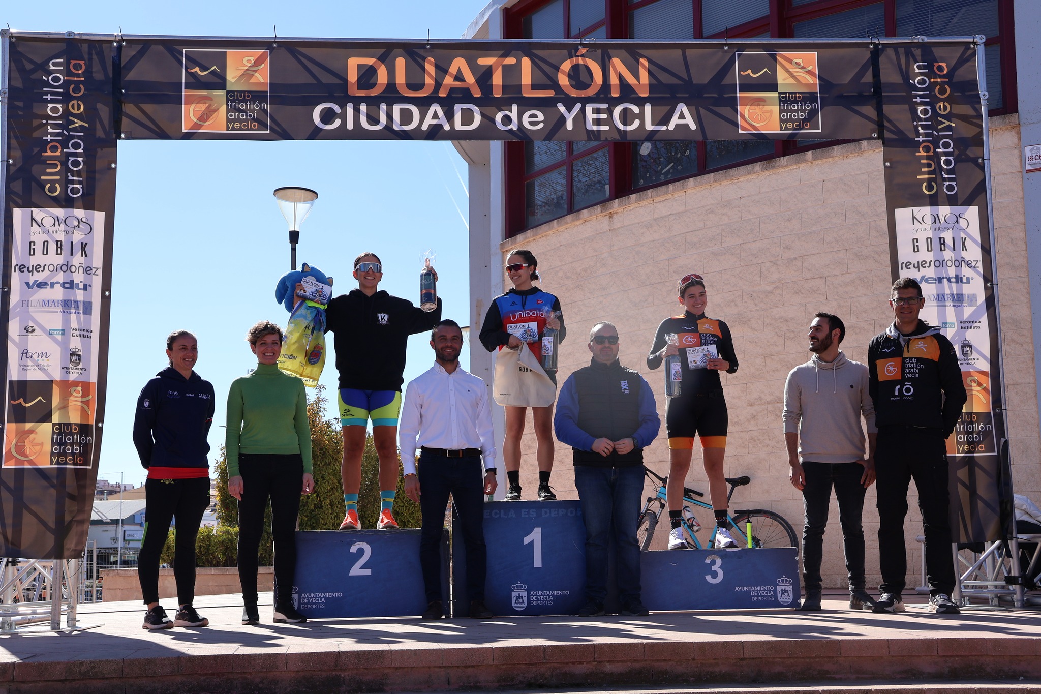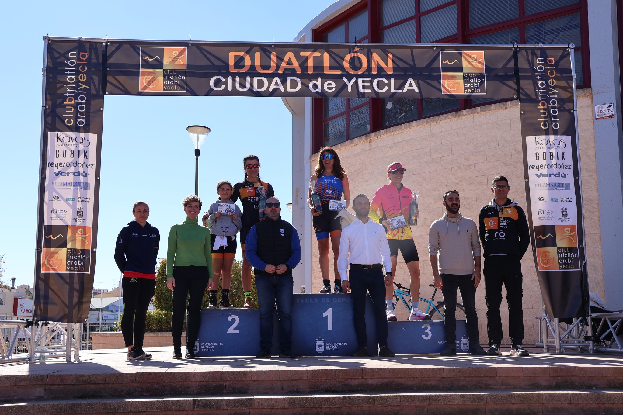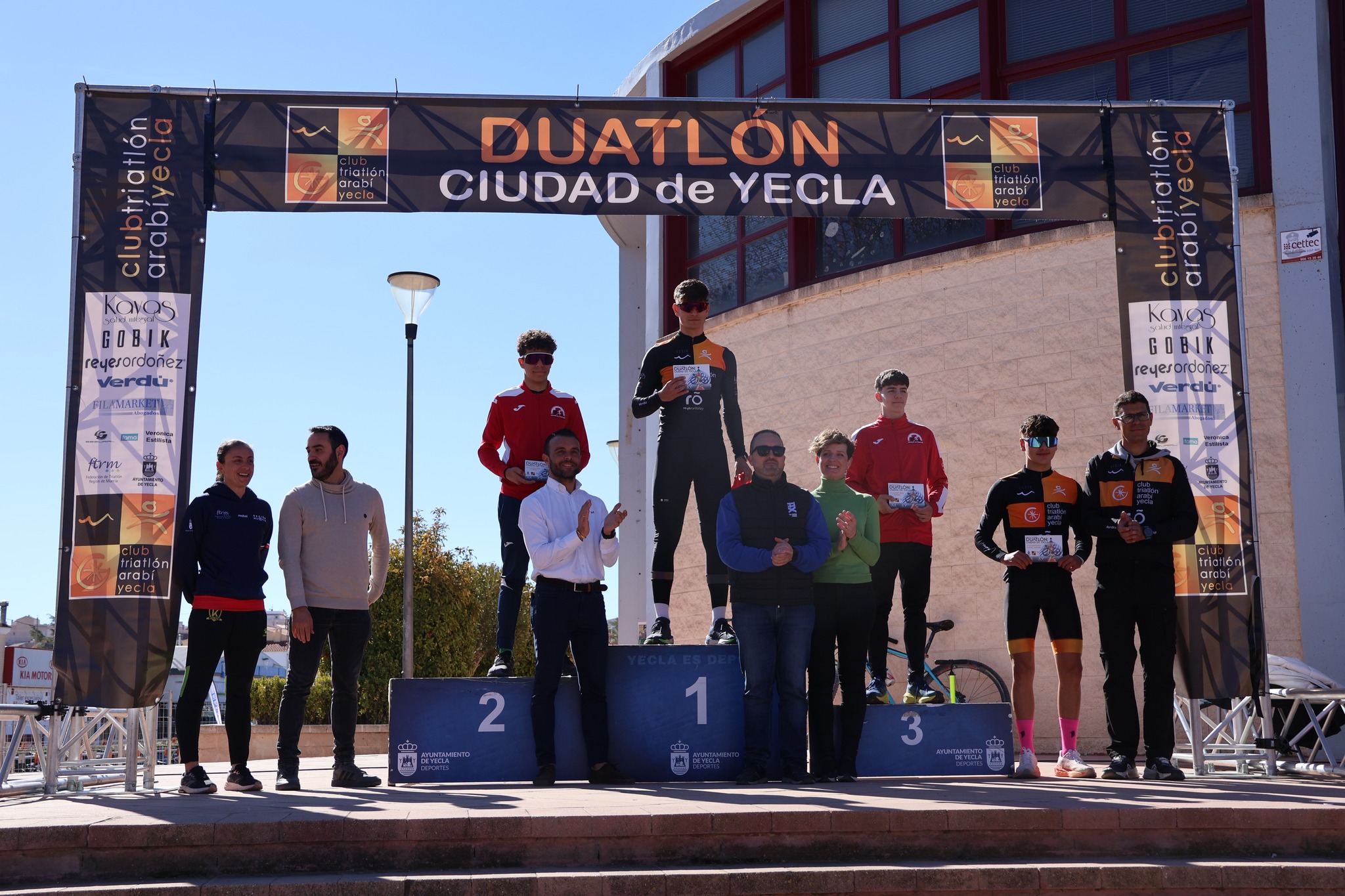 El pasado domingo 9 de febrero se celebró en Yecla el XV Duatlón “Ciudad de Yecla”, indicada dentro de las Pruebas de Menores y Liga Regional de Duatlon en distancia Sprint. La decimoquinta edición del Duatlón, quedará en la memoria de los participantes y en general de todas las personas que colaboraron o estuvieron como público, como una gran edición en la que hubo mucha participación y nivel alto de los 334 duatletas (208 menores y 126 absolutos) con récord de participación de miembros del Club Triatlón Arabí Yecla, con 107 duatletas (61 menores y 46 adultos) y varios exalumnos en otros equipos y también atletas locales locales. También se recordara por la buena climatología y la gran organización que celebró el evento deportivo en la Avenida de la Feria, Edículo, Parque del Cespin y circuitos de bici.