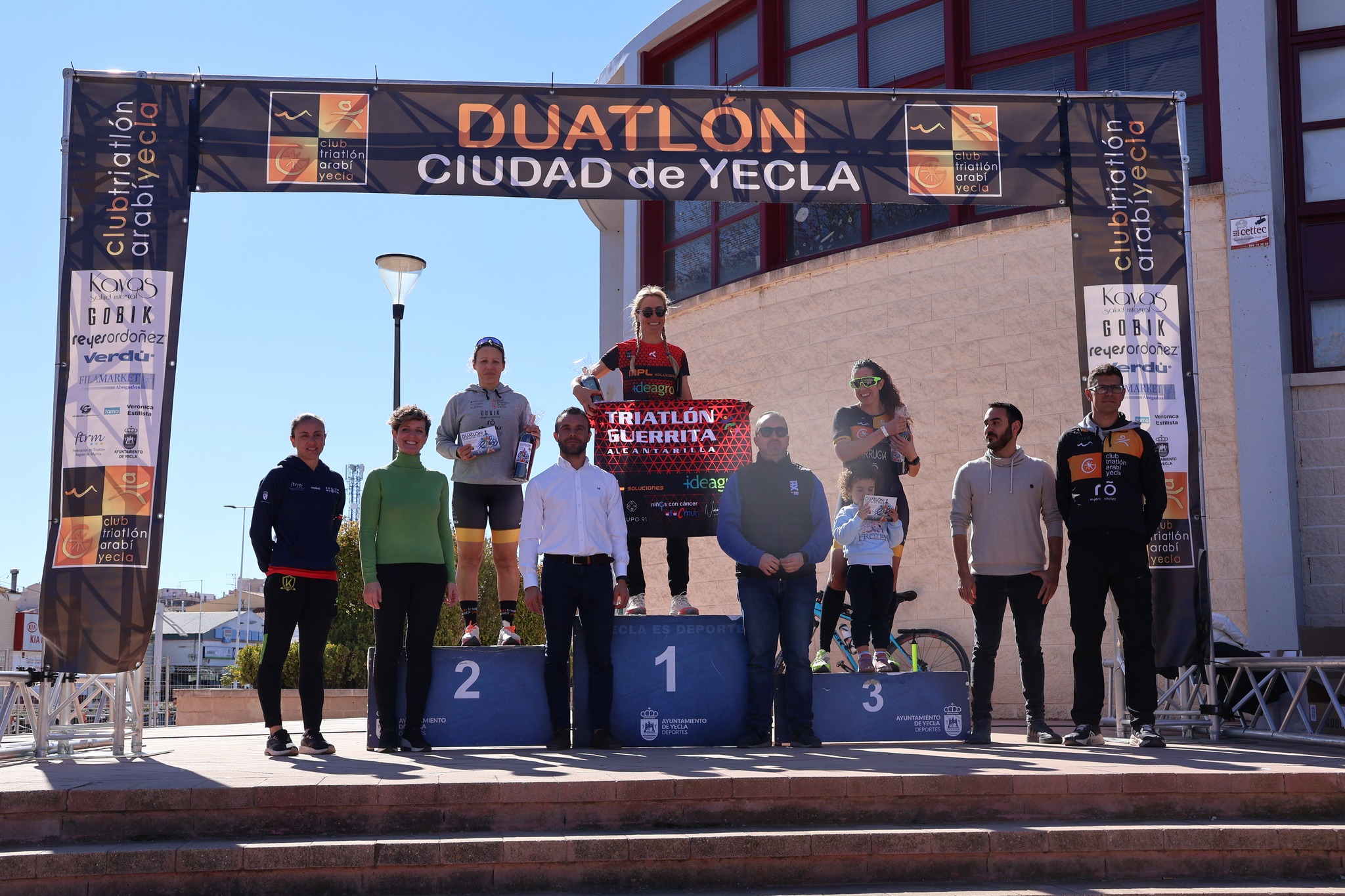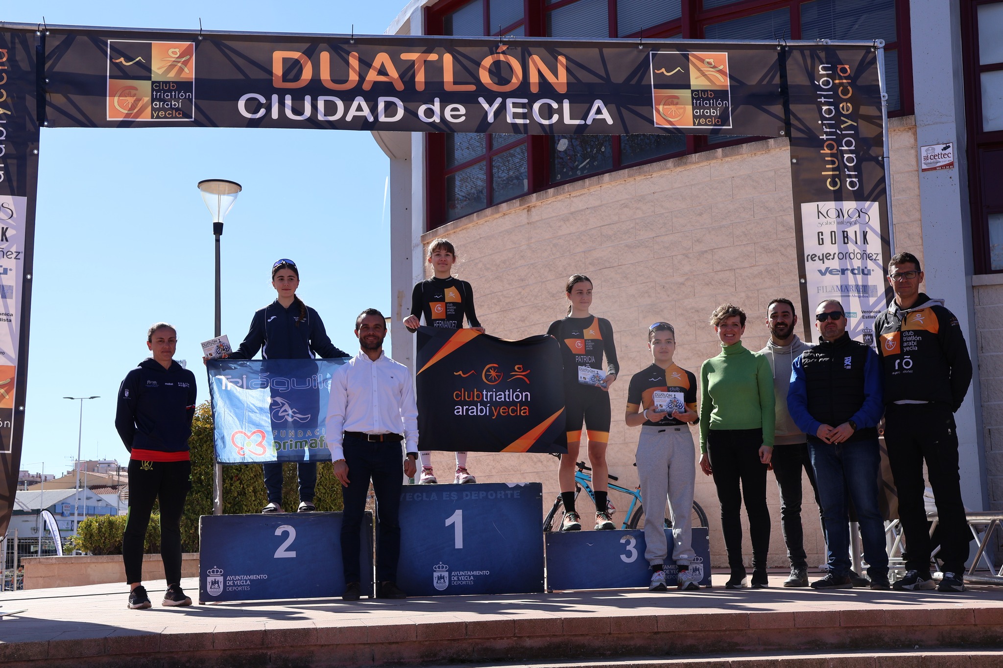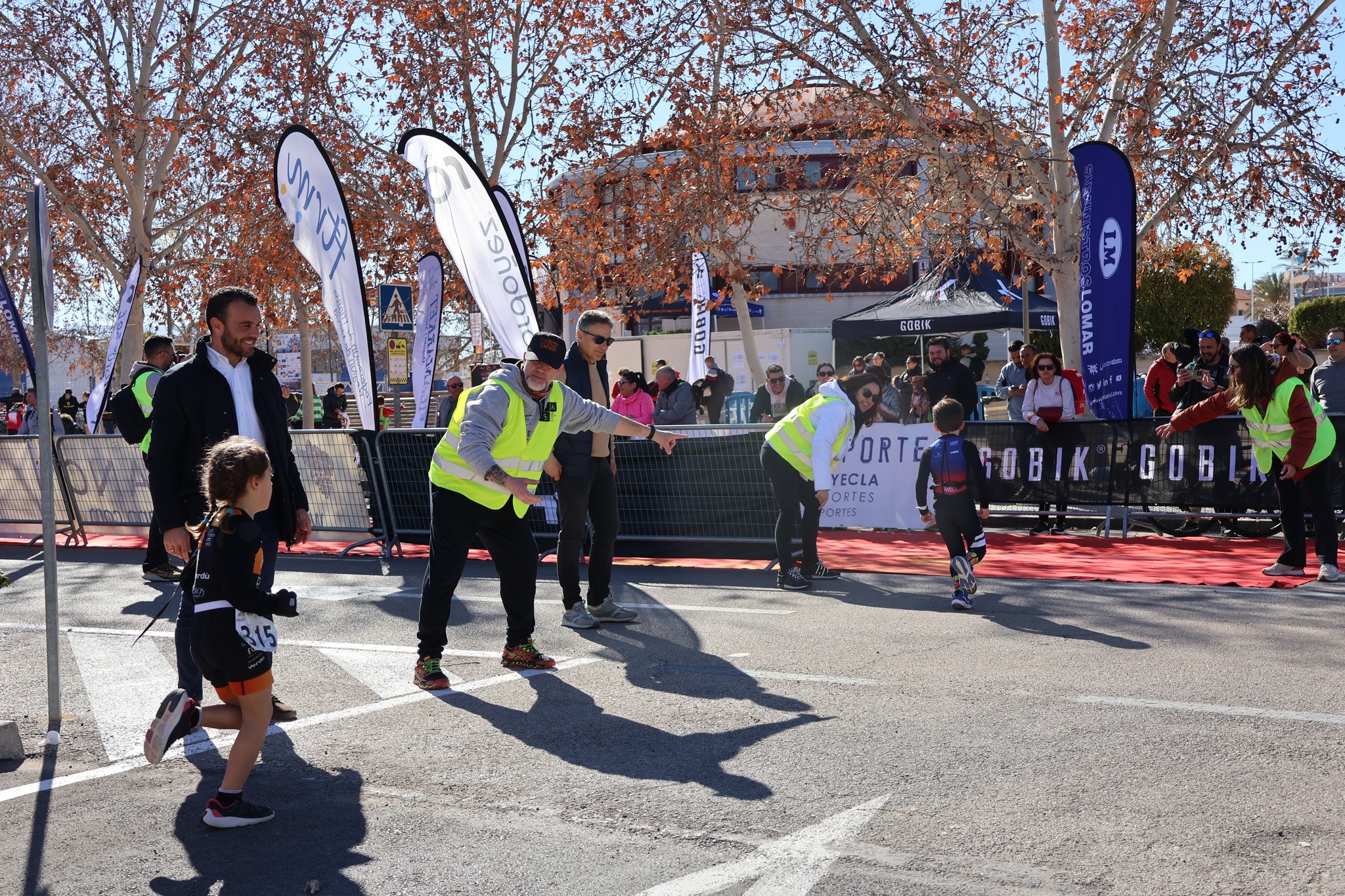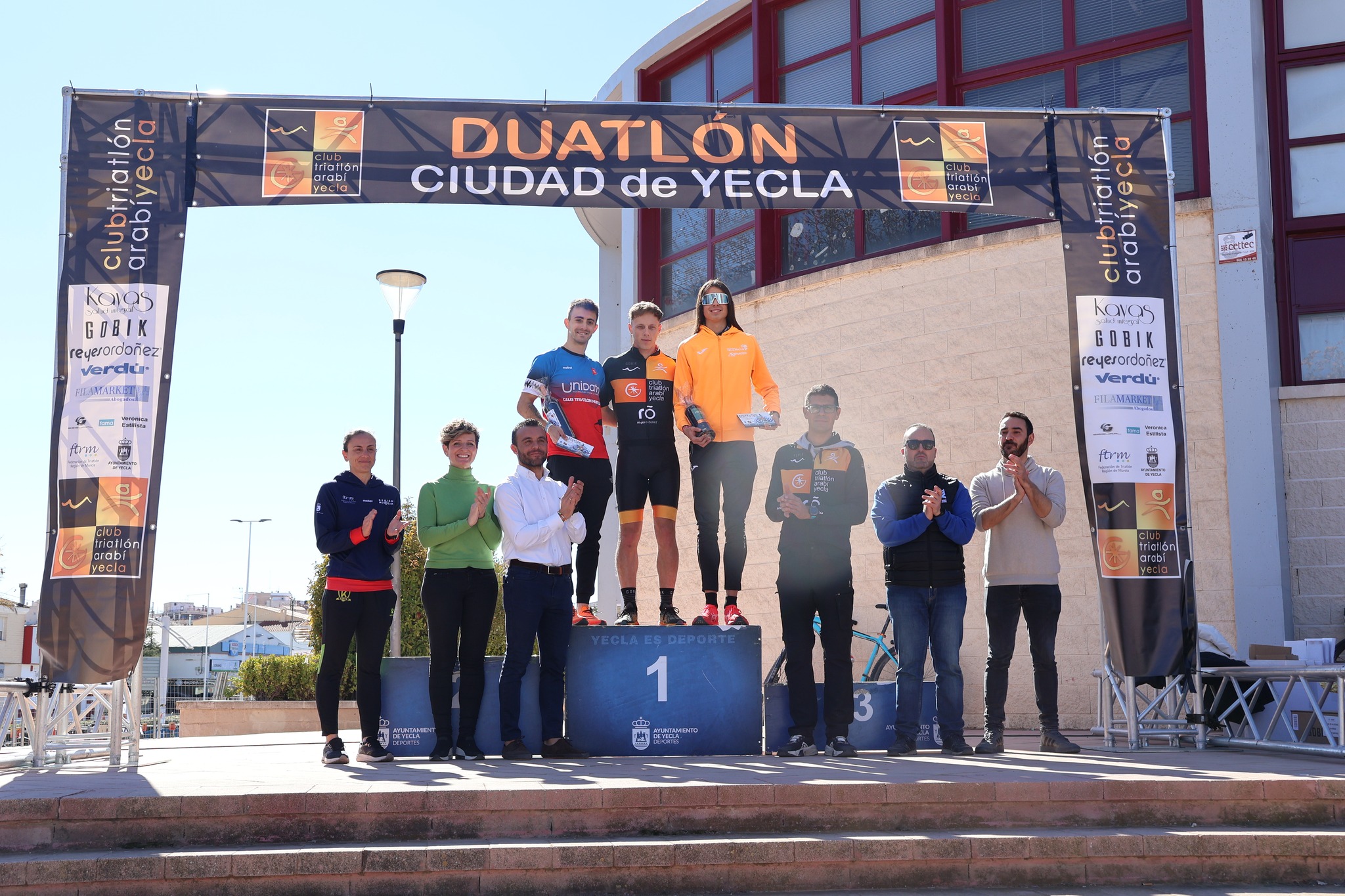 El pasado domingo 9 de febrero se celebró en Yecla el XV Duatlón “Ciudad de Yecla”, indicada dentro de las Pruebas de Menores y Liga Regional de Duatlon en distancia Sprint. La decimoquinta edición del Duatlón, quedará en la memoria de los participantes y en general de todas las personas que colaboraron o estuvieron como público, como una gran edición en la que hubo mucha participación y nivel alto de los 334 duatletas (208 menores y 126 absolutos) con récord de participación de miembros del Club Triatlón Arabí Yecla, con 107 duatletas (61 menores y 46 adultos) y varios exalumnos en otros equipos y también atletas locales locales. También se recordara por la buena climatología y la gran organización que celebró el evento deportivo en la Avenida de la Feria, Edículo, Parque del Cespin y circuitos de bici.
