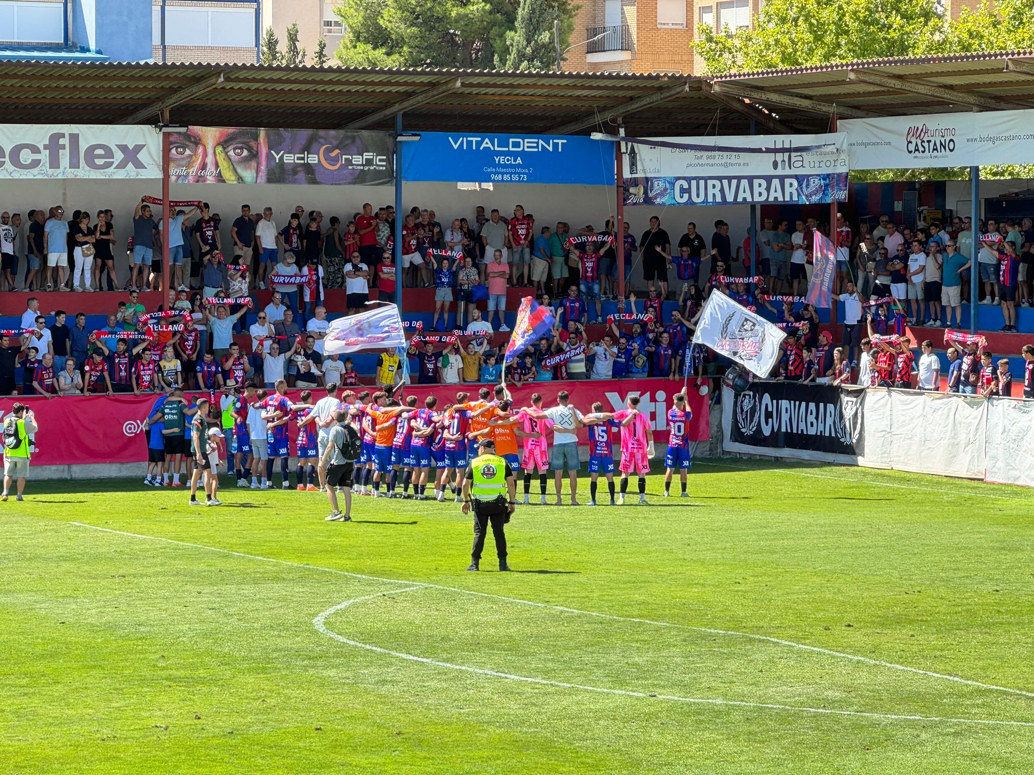 El tramo final fue intenso, con alternativas en ambas áreas. Babacar tuvo la ocasión más clara, al estrellar en el portero un mal despeje de Pelón, mientras Xabi y Asier Seijo rozaron el segundo tanto con sendos internadas y un centro del ’17’ que no encontró rematador. En el lado visitante, los azulinos siguieron insistiendo con remates de Dago y Chavarría, pero sin acierto. El pitido final confirmó la victoria local y permitió celebrar un triunfo que da confianza al equipo yeclano, mientras la afición podrá disfrutar del ambiente de Feria, con 3 puntos en el bolsillo.