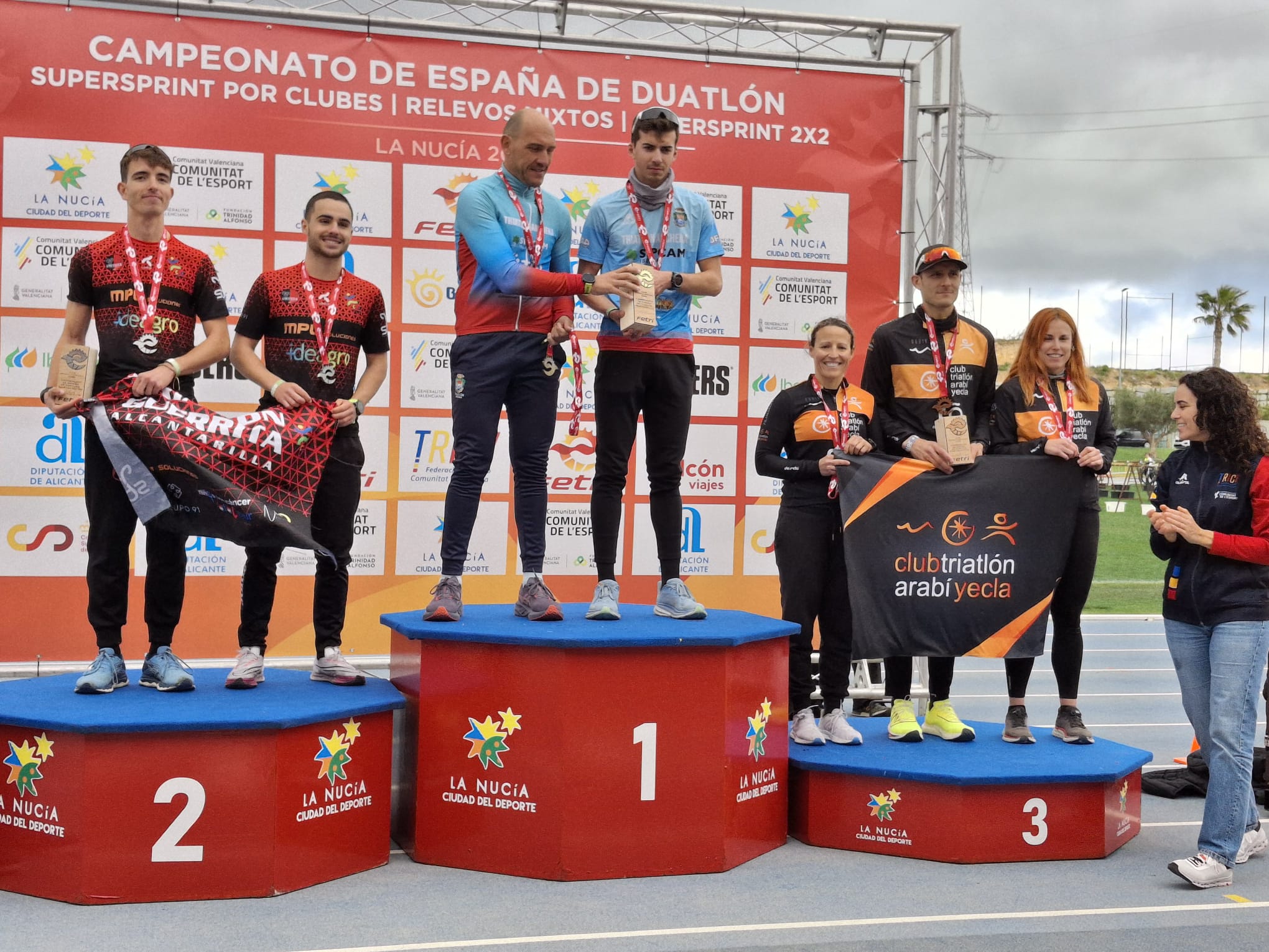 El pasado sábado 22 de febrero por la mañana, 6 equipos masculinos y 5 femeninos del Club de Triatlón Arabí Yecla participaron en el Campeonato de España de Duatlón Supersprint por Clubes y por Equipos Relevos Mixtos en La Nucía. Primero los atletas corrieron por separado y después en la posterior final corrieron todos a la vez, donde uno de los equipos femeninos, el formado por Amaya Hernández, Alba Forte y Merce Martínez consiguió ser 1ª clasificadas en Categoría Open, y uno de los equipos masculinos acabó como 3° clasificados también en la Categoría Open con Sergio Andrés, Héctor Pujante y Alberto Sánchez.
