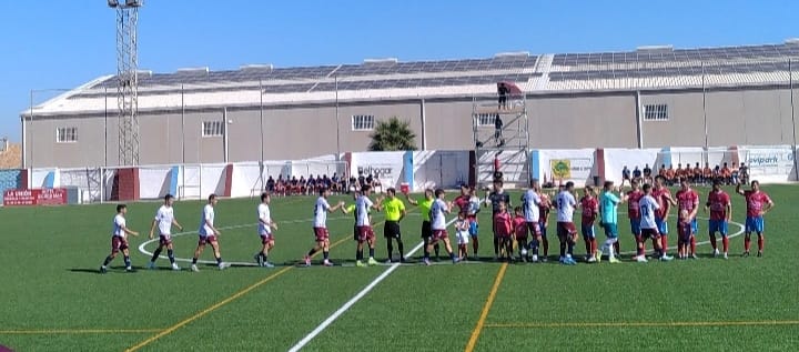 A las 11:00 de la mañana y con un calor que empezaba a apretar, José Belando dio comienzo al encuentro. En las gradas, la gente buscaba alguna sombra o combatían el calor con abanico o paraguas en mano. Los primeros minutos del partido fueron una muestra de lo que prometía ser el encuentro, mucho envío largo, y mucha disputa. Llegando las ocasiones para ambos equipos por mediación del balón parado.
