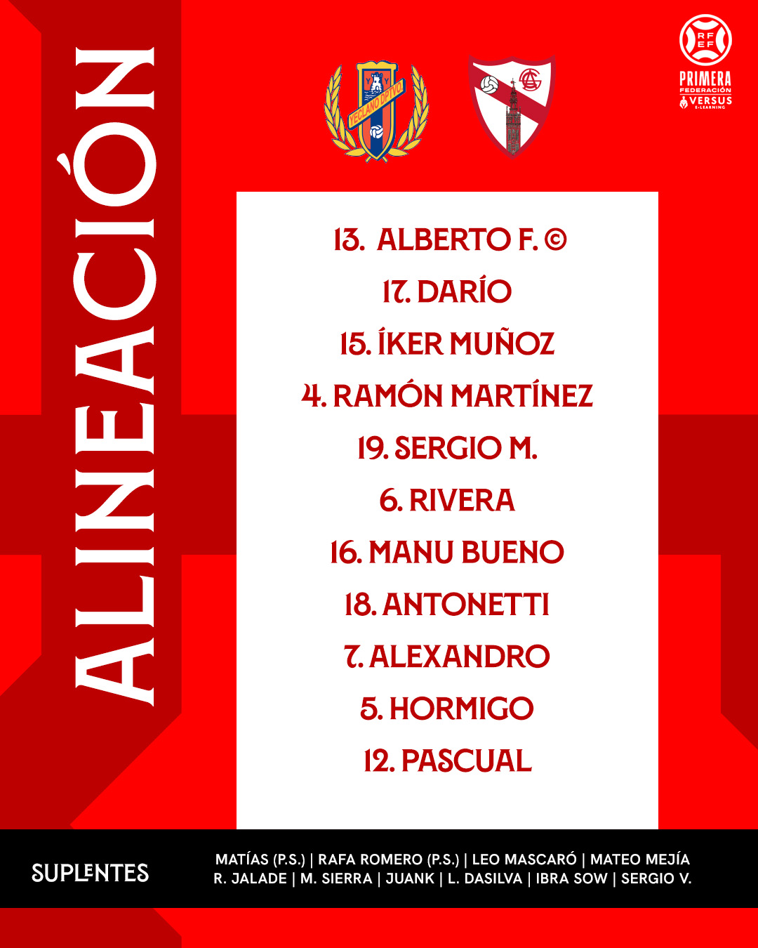 15:20 | Alineación confirmada en los locales: